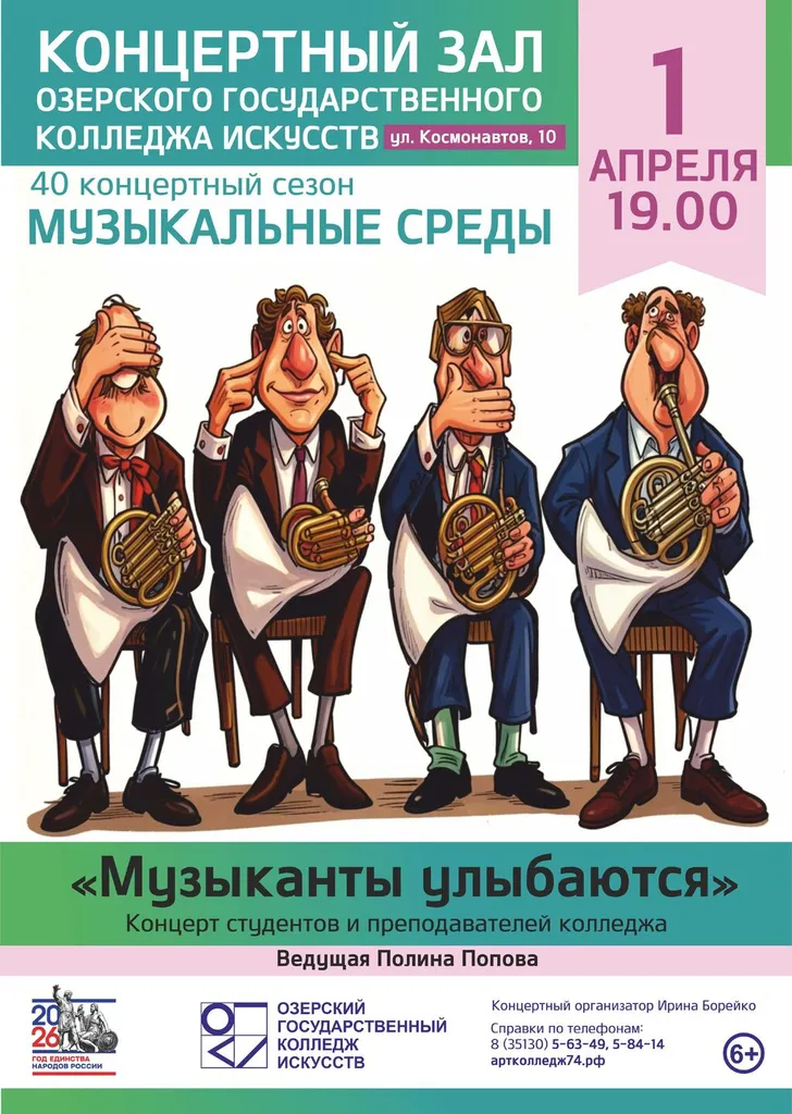 1 апреля в концертном зале Озерского государственного колледжа искусств Вас встретят улыбками и шутками музыканты!